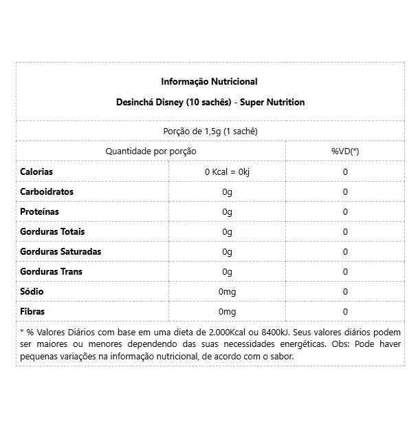 Desinchá Disney (10 sachês)       Descubra o Desinchá Disney, uma infusão especial que combina ingredientes naturais em uma bebida saborosa e saudável. Inspirado pela magia das princesas Disney, cada um dos 10 sachês oferece uma mistura harmoniosa de sabores e aromas que encantam os sentidos. É a opção perfeita para quem busca uma bebida refrescante e nutritiva para o dia a dia.   Benefícios:  * Favorecem o bem-estar e a saúde geral;* Possuem propriedades digestivas, anti-inflamatórias e antioxidantes;* Contribuem para o equilíbrio do sistema digestivo;* Induzem calma e promovem o relaxamento.