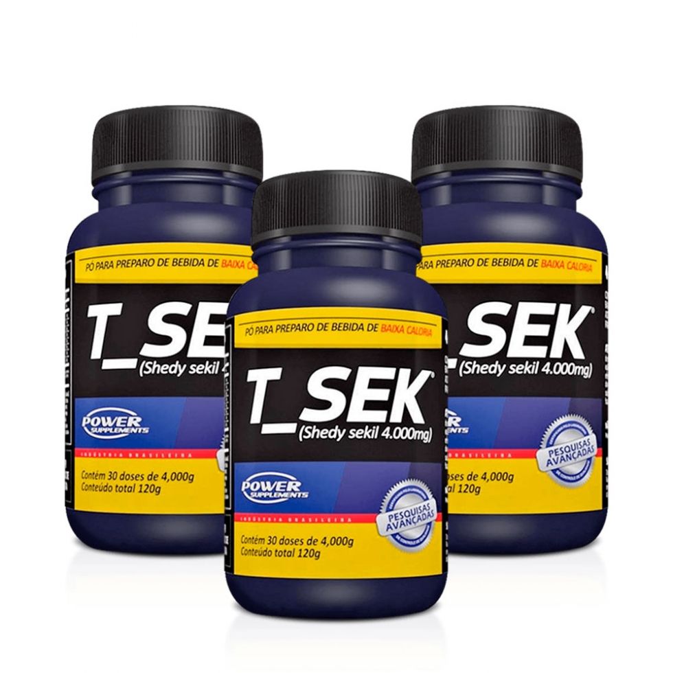 T-Sek (120g) - 3 unidades Composição do Combo:03 unidades T-Sek (120g) - Power Suplements Sobre o produto: Indicado para pessoas que tem muita retenção de líquidos no corpo, o T_Sek 120g é um suplemento diurético, auxilia na diminuição dessa retenção. Ele contém vários extratos de plantas que favorecem a obtenção de um corpo saudável entre elas, a Bromélia ananás, Hibicus sabdariffa L, Cymbopogon citratus stapf, Baccharis genistelloides, camélia sinensis e Ilex paraguariensis. Todos com um único objetivo, reduzir medidas e inchaço do organismo com saúde e disposição. Além de conter em sua fórmula uma boa quantidade de colágeno que ajudará manter a pele firme e saudável.Funções dos componentes do T-SEK:Colágeno – Ajuda a emagrecer, deixa a pele mais firme e previne rugas e flacidez.Abacaxi – Rico em vitamina C, possui substâncias digestivas e diuréticas.Hibisco – Estimula a queima de gorduras e regula o intestino.Capim-limão – É diurético e ajuda a remover toxinas ruins do corpo.Mate verde – Rico em vitaminas, minerais e aminoácidos. É termogênico e possui ação digestiva e diurética.Carqueja – Protege o estomago, previne úlceras e melhora a digestão.Chá verde – Ajuda a emagrecer, protege o coração e combate o envelhecimento.Chá branco – Promove sensação de bem-estar, diminui o colesterol e emagrece. Nicotinamida – Melhora a textura da pele e é um poderoso agente no combate à acne.Maltodextrina – Fornece energia para práticas de exercícios e contribui para melhor recuperação muscular.Pantotenato de cálcio ou vitamina B5 – Atua metabolizando proteínas, gorduras e carboidratos, assim auxiliando na perda de peso.Cianocobalamina ou vitamina B12 – Possui um importante papel no combate a depressão e na prevenção de anemia.Picolinato de Cromo – Principalmente para pessoas que praticam atividades físicas, o picolinato de cromo ajuda a desenvolver os músculos. Isso porque ele serve para queimar gorduras e aumentar massa magra.Biotina – Acelera os processos metabólicos auxiliando na perda de peso. É um excelente aliado à beleza, atuando na nutrição dos cabelos, unhas e pele.