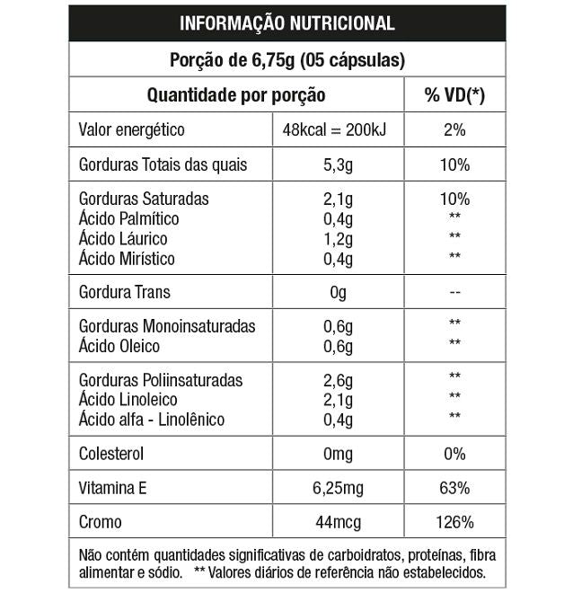 XLA (120 caps) - NUTRATA O XLA é uma fórmula que contém vários ingredientes de grande valor nutricional, tornando-o um produto capaz de promover diversos benefícios nutricionais. Composto de ômega 3, 6 e 9, auxilia no controle do colesterol, melhora o perfil lipídico LDL (colesterol ruim), aumenta o colesterol HDL (colesterol bom), entre outros benefícios para a memória. BENEFÍCIOS:* Cápsulas softgel;* Enriquecido com vitamina E, maior poder antioxidante;* Altas concentrações de ômega 3, 6 e 9;* Extraído exclusivamente de fontes vegetais;* Com Picolinato de Cromo.
