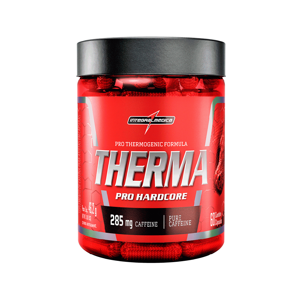 THERMA PRO HARDCORE (60 caps) - INTEGRALMÉDICA O Therma Pro Hardcore é um produto à base de extrato de guaraná, que possui naturalmente altas concentrações de cafeína, um potente termogênico. A cafeína ativa o metabolismo elevando a termogênese e promovendo a produção de energia através da utilização da gordura corporal. O potencial de poupar o glicogênio muscular, fazendo com que o organismo utilize a gordura como fonte de energia no lugar do glicogênio (combustível energético limitante nos exercícios de endurance), faz da cafeína um eficiente recurso ergogênico, pois resulta em um aprimoramento da performance dos atletas além de retardar o estado de fadiga. Therma Pro Hardcore foi criado para acelerar o metabolismo, aumentar a queima de gordura, melhorar a definição muscular e maximizar a performance geral dos atletas. É um importante aliado na prática de exercícios físicos e nas dietas de emagrecimento. BENEFÍCIOS: * Mais energia para os exercícios físicos;* 280mg de cafeína por porção;* Adequação da concentração para treinos intensos;* Favorece a lipólise, a quebra de gorduras;* Eleva o metabolismo;* Auxilia em programas de emagrecimento.