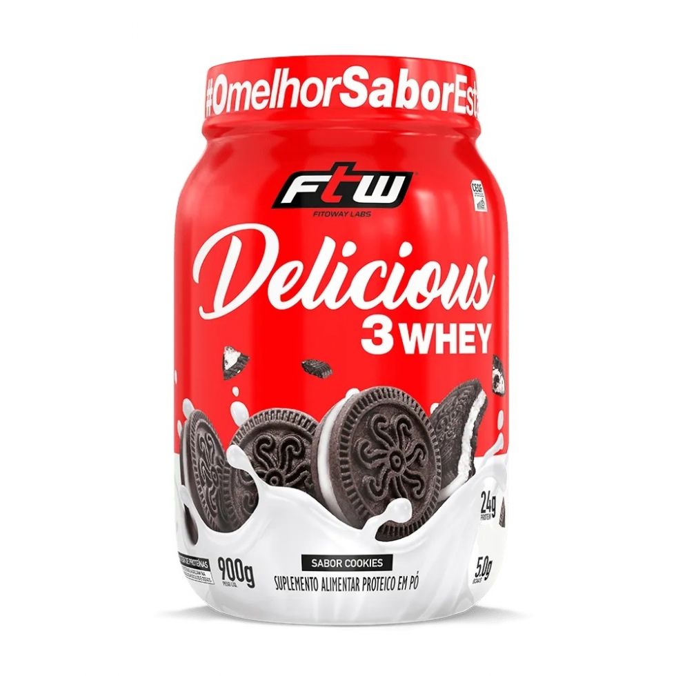 Delicious 3Whey (900g)     O Delicious 3Whey FTW apresenta variedade e praticidade em um só produto. Praticantes de atividade física ou quem busca uma rotina alimentar com bons nutrientes se beneficia do uso das proteínas do soro do leite, que fornecem qualidade nutricional com alto valor biológico. Contém grande concentração de proteínas e aminoácidos (rico em Bcaas e Glutamina) que são essenciais para os processos de ganho, recuperação e manutenção muscular.   Ideal para auxiliar a obter um resultado, o Delicious 3Whey FTW é uma fonte de proteína que ajuda na formação dos músculos e ossos. Sua fórmula foi especialmente elaborada e possui sabores exclusivos que só a FTW tem.  Benefícios: - Proteína de alto valor biológico;- Grande concentração de BCAA’s e glutamina;- Auxilia na recuperação e ganho de massa muscular;- Inibe o catabolismo devido á alta concentração de BCAA’s.