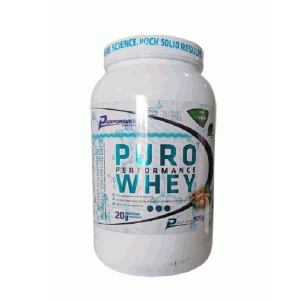 PURO PERFORMANCE WHEY (909g) - PERFORMANCE NUTRITION      PURO PERFORMANCE WHEY é uma proteína extraída do soro do leite 100% pura, que possui os componentes biologicamente ativos característicos desta proteína: Alfa-Lactalbumina, Imunoglobulina (Ig) e Lactoperoxidase, trata-se de uma formula com Whey Protein Concentrado de alto valor biológico, com um espectrum completo de aminoácidos, cuja porção de 28g fornece 9,5g de Aminoácidos Essenciais, sendo 4,5g de BCAA’s dos quais 2g é leucina, é instantâneo e adoçado com STEVIA, um adoçante Natural.  BENEFICIOS:* Whey Protein Concentrada microfiltrada;* Ideal para ganho de massa muscular;* Promove melhor recuperação da musculatura;* 20g de whey por dose;* 9,5g de aminoácidos essenciais;* Adoçado com Stévia;* Não contém corantes;* Não contém Glúten.