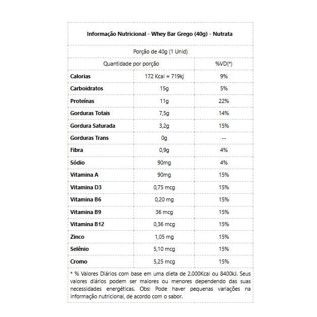 WHEY GREGO BAR - NUTRATA      Grego Bar é prática, balanceada e pode ser usada como lanches intermediários para controlar a ingestão excessiva de alimentos em dietas de controle de peso ou definição. Também é um importante incremento proteico para minimizar a perda de massa muscular como consequência dos treinos ou durante dietas de restrição calórica.       Novo Whey Grego Bar Sabor Dulce de Leche Havanna: A barra de proteína feita com o legítimo Dulce de Leche Havanna. Whey Grego Bar Dulce de Leche Havanna, une a credibilidade da Nutrata no desenvolvimento de barras de proteína com a tradição e elegância do tradicional dulce de leche Havanna, em uma apresentação surpreendente, recheada de sabor e nutrição.    Benefícios: - Possui diferentes proteínas: WPC + WPI + caseinato de cálcio + peptídeos de colágeno;- Alto valor biológico e perfil de aminoácidos essenciais;- Nutricionalmente balanceada;- Pratica, podendo ser consumida em qualquer hora e lugar;- Sabor incomparável e cremosidade única;- Fornece 11g de proteína por barra;- Fonte de fibra de alta tecnologia (Orafti Synergy);- Mix especial de vitaminas e minerais.