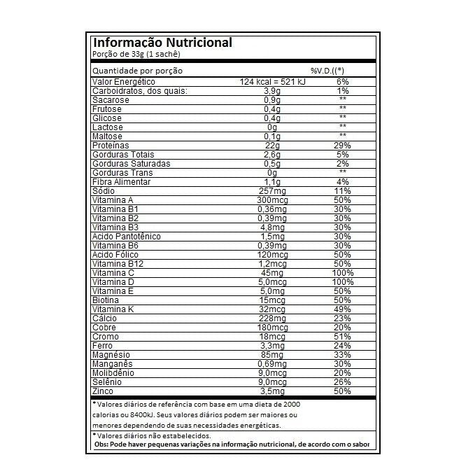 Veggie Protein Sachê        Vanilla Whey é uma proteína com notas de baunilha e muito versátil. Pura, misturada com frutas ou água de coco, fica uma delícia. Sua fórmula é uma combinação de Whey Protein Hidrolisado e Isolado, aroma de baunilha e peptídeos de colágeno, que agregam valor à fórmula e complementam a ação das proteínas.      Veggie Protein Cacao é uma deliciosa combinação da proteína isolada da ervilha com a proteína de amêndoa e o puro cacau belga. O resultado é um excelente perfil de aminoácidos e sabor e cremosidade incríveis.      Banana com canela - Blend de proteínas vegetais da amêndoa e da ervilha amarela, com o sabor da banana liofilizada e um toque especial de extrato de canela. Além das proteínas, oferece um aporte nutricional através das 13 vitaminas e 9 minerais presentes em sua formulação. CONHEÇA SEUS COMPONENTES: WHEY PROTEIN HYDROLISADO E ISOLADO     O blend de Whey Protein Hidrolisado e Isolado Essential apresenta perfil proteico puro e completo em aminoácidos de alto desempenho e valor biológico. Valor biológico é uma escala utilizada para determinar a eficiência de uma fonte nutricional, ou seja, o quanto ela é absorvida e aproveitada pelo organismo. Conseguimos essa eficiência nutricional através do processo de Cross-Flow Microfiltration (CFM), que purifica e preserva as propriedades funcionais da proteína, incluindo as importantes subfrações proteicas lactoferrina, glicomacropeptídeos e imunoglobulinas. Diferente de técnicas menos aprimoradas, como a troca iônica (ion-exchange), o CFM não utiliza produtos químicos.  PEPTÍDEOS DE COLÁGENO     Os peptídeos de colágeno tipo I Peptan® da Rousselot – marca líder mundial – são altamente digeríveis e facilmente absorvidos (taxa de absorção superior a 90%).   Os peptídeos de colágeno Peptan® são estruturas de tamanho extremamente reduzido obtidas a partir do colágeno hidrolisado que apresentam solubilidade e absorção potencializadas. O colágeno é o maior constituinte do tecido conectivo, como cartilagens, tendões, pele e ossos.      É um suporte nutricional para os atletas, idosos e público em geral.  ADOÇANTES NATURAIS     Os adoçantes utilizados nos suplementos Essential Nutrition são obtidos de fontes naturais NON-GMO (não geneticamente modificados), apresentam zero ou baixo índice glicêmico, não deixam sabor residual e podem ser utilizados por gestantes, crianças e pacientes com diabetes.   BENEFÍCIOS: *Whey Protein Hidrolisado e Isolado*22g de proteína por porção*Peptídeos de colágeno - Peptan®*BCAA naturalmente em sua composição*Adoçantes de fontes naturais NON-GMO - Xilitol, eritritol e estévia*NÃO CONTÉM Whey Protein concentrado*NÃO CONTÉM Caseína*NÃO CONTÉM Adoçantes artificiais*NÃO CONTÉM Corante artificial*NÃO CONTÉM Açúcar*NÃO CONTÉM Glúten*NÃO CONTÉM Lactose*NÃO CONTÉM Conservantes