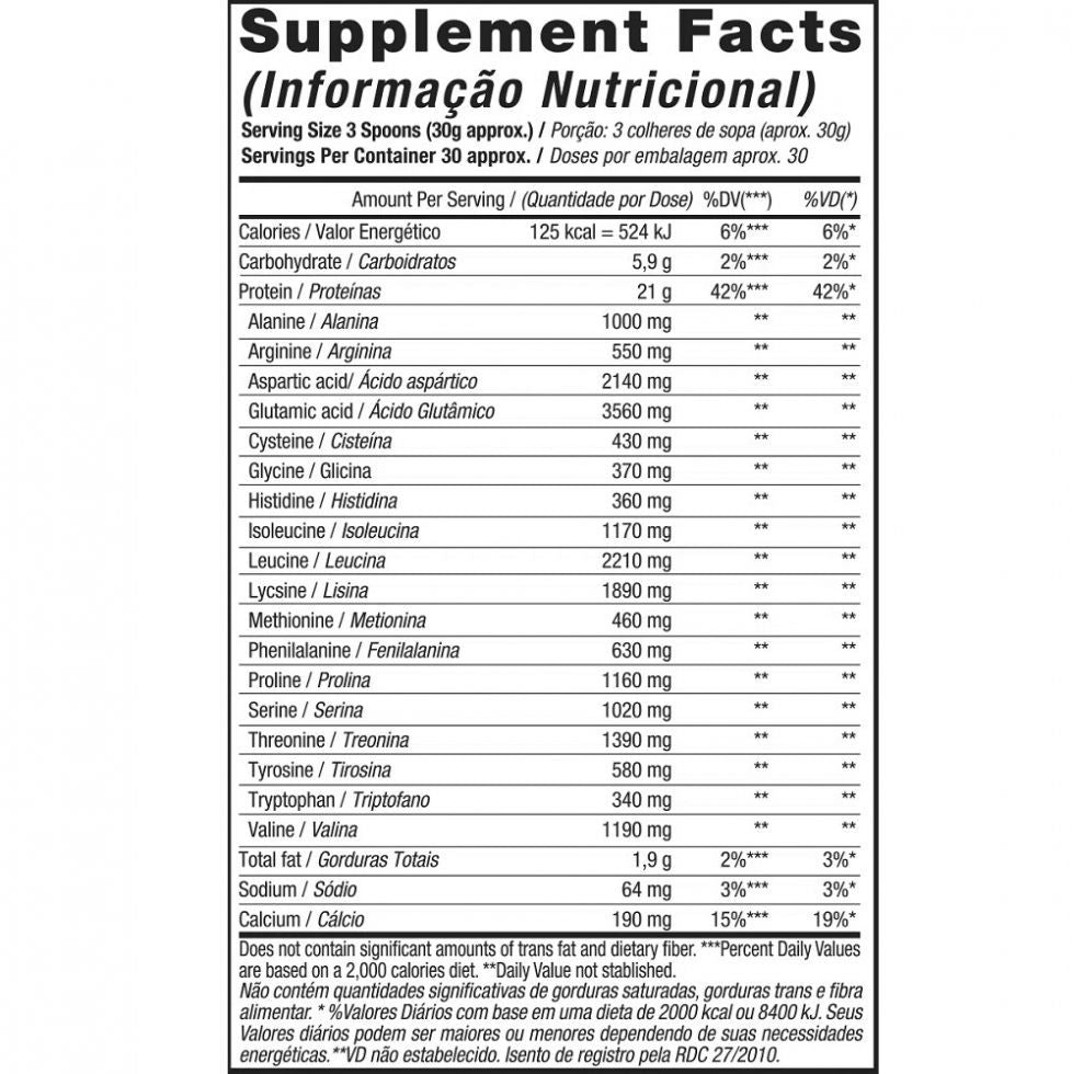 Whey 100% HD (900g) Whey 100% HD é mais um mega suplemento da linha caveira preta! Composto por três tipos de whey protein (concentrado, isolado e hidrolisado), ele é uma ótima opção para auxiliar no ganho de massa muscular! Além disso, sua composição conta também com a adição de BCAA, aminoácidos de cadeia ramificada que contribuem para uma melhor recuperação pós-treino. Além disso, Whey 100% HD é certificado pela NSF International, uma organização independente sem fins lucrativos que desenvolve padrões e certifica produtos relacionados à segurança alimentar. O selo NSF indica que o produto foi testado e avaliado quanto à sua qualidade, segurança e desempenho, e atende aos padrões e requisitos estabelecidos pela NSF. --* WHEY PROTEIN CONCENTRADO Como citado acima, quando esses nutrientes são removidos, o produto é uma versão com menos impurezas e com mais soro do leite, ou seja, agora temos Whey Protein na forma concentrada. Whey Protein Concentrado contém geralmente, de 40% a 80% de proteína de alto valor biológico que fornece aminoácidos importantes para a hipertrofia muscular, facilita a construção de tecido muscular, sendo recomendada para a nutrição durante o dia. --* WHEY PROTEIN ISOLADO O Whey Protein Isolado é um suplemento obtido a partir da filtração do Whey Protein Concentrado, e se diferencia pela alta concentração de proteínas e sua pureza – pelo menos 90% por porção – e pela ausência de gordura e carboidratos (lactose) em sua formulação, recomendada para nutrição logo após o treino. --* WHEY PROTEIN HIDROLISADO O Whey Protein Hidrolisado é um suplemento naturalmente com a 90% de pureza no produto, pois é gerado através da ‘quebra’ da proteína pela hidrólise, gerando peptídeos, sendo indicado para pessoas intolerantes à lactose ou alérgicas a proteína do leite. --*BCAA O BCAA é certamente um dos suplementos mais famoso das academias, utilizado por grande parte dos praticantes de musculação. O termo BCAA é na verdade uma abreviação de Branched Chain Amino Acids, ou Aminoácidos de Cadeia Ramificada, que incluem a leucina, valina e isoleucina. Em conjunto, estes três aminoácidos formam cerca de 1/3 das proteínas musculares e são essenciais para o anticatabolismo e recuperação muscular. Esses efeitos do BCAA ajudam a diminuir os danos musculares resultantes da prática esportiva, aceleram a recuperação muscular, estimulam a síntese de proteínas e reduzem a fadiga. Benefícios: - 21g de proteínas por porção;- 4,6g de BCAA;- Auxilia na hipertrofia;- Auxilia na recuperação muscular;- Aumento da absorção de aminoácidos;- Manutenção da massa muscular;- Redução do catabolismo;- Rápido fornecimento de aminoácidos;- Ganho na performance;- Função anabólica.