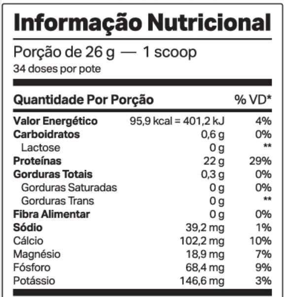 WheyDop ISO (900g) – Elemento Puro Desenvolvido no Brasil com matéria-prima europeia, WHEYDOP™ ISO é o suplemento proteico ideal para atletas intolerantes à lactose ou em dietas restritas em carboidratos e gorduras. Em uma combinação de aromas incríveis com a mais pura proteína do soro do leite (WPI), criamos um whey protein 100% isolado — 0 g de lactose — e que surpreende no sabor. WHEYDOP™ ISO fornece 22 g de proteína, 4,6 g de BCAAs e 3,6g de glutamina e percursores em apenas 26 g de produto. - SABOR INDESCRITÍVEL. WHEYDOP™ ISO é feito com matéria-prima de origem europeia, mercado conhecido pelo alto grau de exigência e que se difere dos demais por extrair o whey protein sem usar reagentes químicos, o que garante a qualidade superior de WHEYDOP™ ISO e resulta em sabores incomparáveis, livre daquele desagradável gostinho residual de whey protein, além de conter mais cálcio e menos sódio. Benefícios: * Sabor único;* Rápida absorção;* Baixo carboidrato;* Possui alta concentração de proteína;* Facilita o ganho de massa muscular.