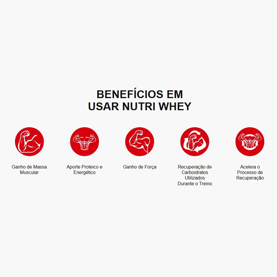 Nutri Whey Protein (900g) - IntegralMédica Você tem interesse em ganhar massa muscular, mas não sabe como? O Nutri Whey Protein é o suplemento indicado para isso! O ganho de massa muscular nem sempre é fácil, exige dedicação e esforço, mas o resultado é o que faz valer a pena. Apenas treinar pesado não é o suficiente, a alimentação nutritiva e proteica, o consumo adequado de água e boas noites de sono também são fases importantes nesse processo. E ao consumir o Nutri Whey Protein você acelera seus ganhos. Com fórmula de fácil solubilidade e delicioso sabor, Nutri Whey Protein fornece, na porção diária, 30 g das melhores proteínas combinadas a uma rica oferta energética. As proteínas do soro de leite (whey protein), albumina e colágeno estão relacionados com funções importantes no organismo, sobretudo na composição das estruturas musculares. Já os carboidratos complexos (maltodextrina) e simples (frutose) são essenciais no fornecimento de energia para os treinos. Isento de sacarose (açúcar), Nutri Whey Protein ainda é fonte de BCAA e adicionado de vitaminas e minerais. Benefícios: * Ganho de força e massa muscular;* Aminoácidos essenciais em quantidade e proporções fisiologicamente ideais;* Alta digestibilidade e biodisponibilidade excelente;* Alto índice de eficiência proteica.